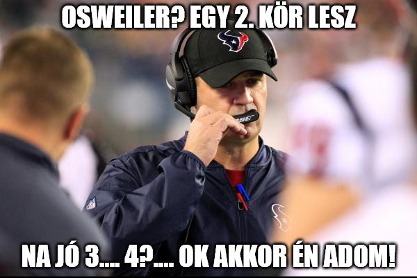 De az a tavalyi hibából ered, idén a helyzetből a maximumot hozták ki.. A trade sztem a Texans részéről is megér egy A osztályzatot, mert nem nyelnek be még egy rossz évet, amikor egy Watt is játszani fog a liga elit védelemben.
