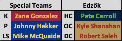 Edzők: Pete Carroll (SEA), Kyle Shanahan (SF), Robert Saleh (SF)
