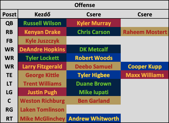 Csere: Chris Carson (SEA), Raheem Mostert (SF), Kyle Juszczyk (SF)*