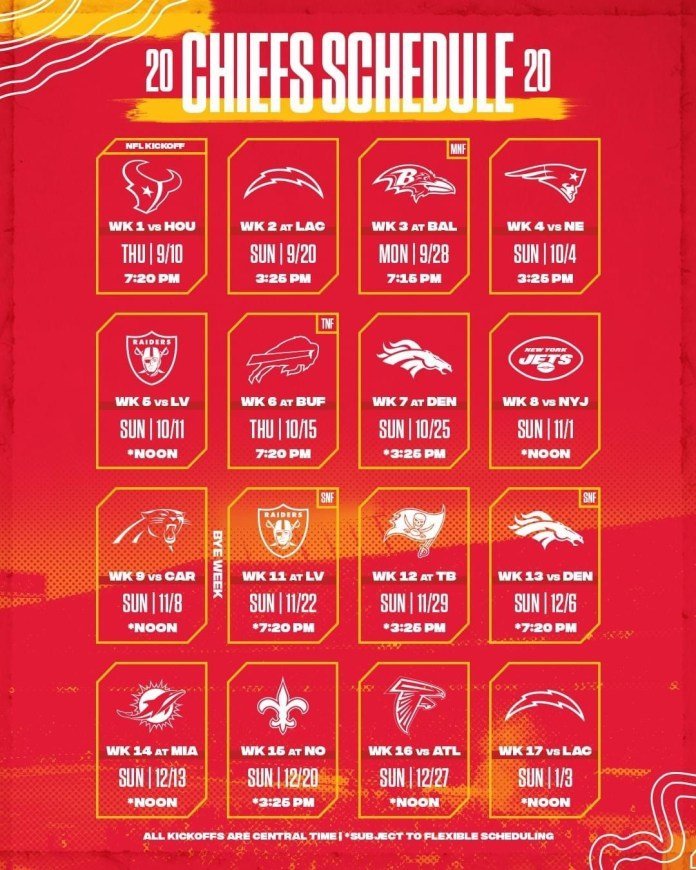 - Primetime: 5 (wk1 KICKOFF vs HOU, wk3 MNF @BAL, wk6 TNF @BUF, wk11 SNF @LV, wk13 SNF vs DEN)