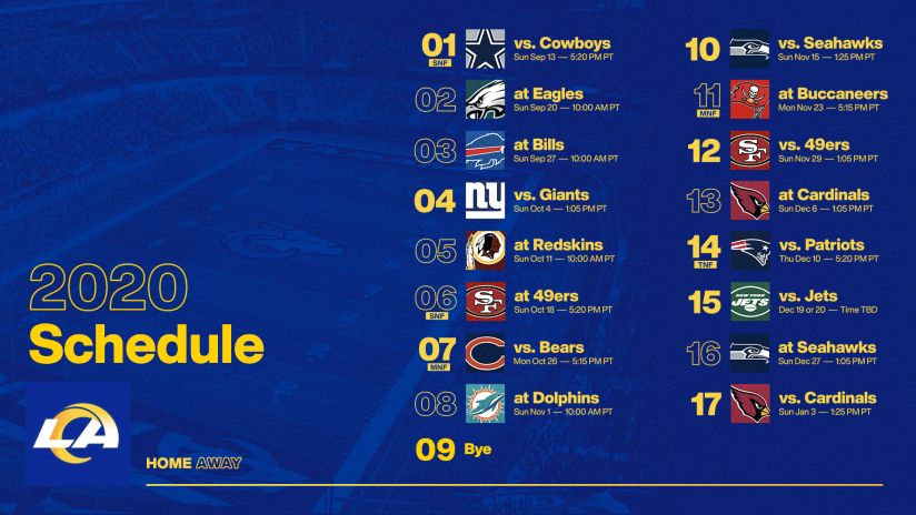 - A szezonkezdet egy brutális idegenbeli rangadóval indul, egyből a regnáló NFC-bajnok jön, aztán sorozatban négy olyan ellenfél következik, akik magasan draftoltak 2020-ban (Redskins – 2., Lions – 3., Panthers -7., Jets – 11.)