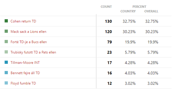 A Bears szerényebb évtizedet tudhatott maga mögött (már ami a támadókat illeti), így talán annyira nem meglepő, hogy az első két helyen egy speciális és egy védő játék végzett. Cohen visszahordása 10 szavazattal kapott többet, mint a második helyezett Mack sack. Végül a harmadik helyre csak befért egy támadó play, Matt Forté Bucs elleni futásával.