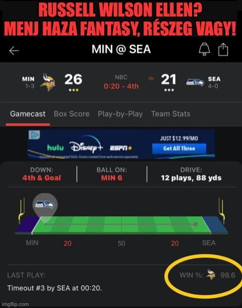 A Seahawks, hogy lehet 1.? :) Pont róluk az a meggyőződése az embernek, hogy hosszútávon nem fenntartható ez a fajta játék, hogy Wilson nyerje meg a meccseket mindig.