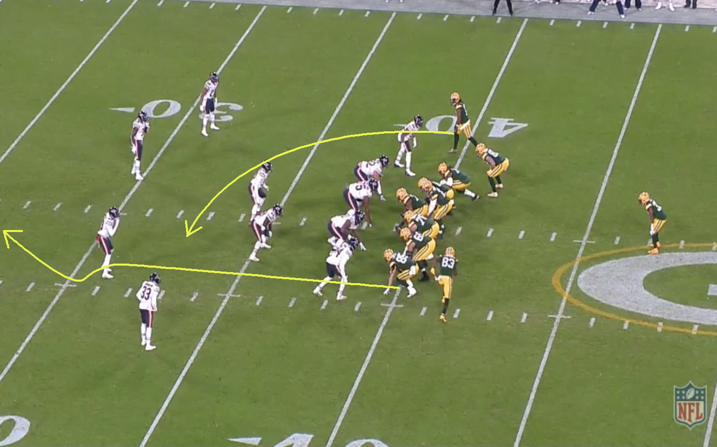 Davante Adams a Packers messze legveszélyesebb elkapója, így általában extra figyelmet is kap. A Bears kicsit túlzásba vitte ezt ennél a játéknál, ahol Robert Tonyan TD-t szerzett.