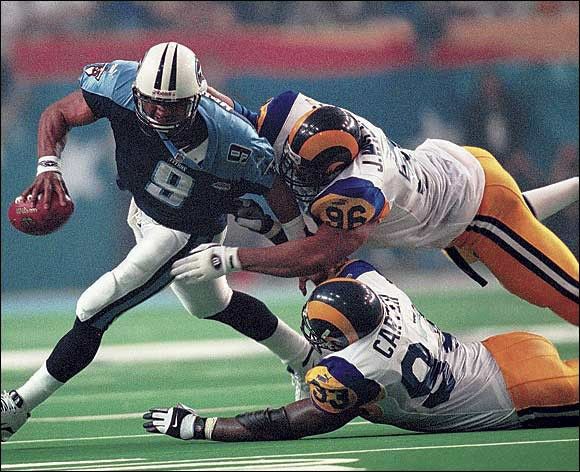 McNairnek egy dobása maradt csak, ha azzal nem szereznek TD-t, akkor vége a mérkőzésnek. Az irányítón óriási volt a nyomás, de három védő szorításában így is kiosztott egy tökéletes passzt Kevin Dysonnak, aki el is kapta a játékszert. Csakhogy alighogy megkapta, a Rams LB-je, Mike Jones földrevitte őt, egy yardra a célterülettől. És mivel időkérése nem volt több a Titansnek, így az óra lepörgött, és 23-16-ra nyert a Rams. Egy yard – mindössze ennyin múlott, hogy nem lett hosszabbítás.
