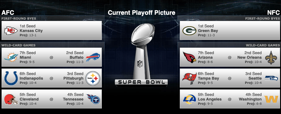 Múlt hét óta helyet cserélt a Seahawks és a Rams, illetve elhúzott egy győzelemmel a Packers. A huntból kiesett a Vikings, viszont nyitottabb lett az NFC East, ahol a Washington ugyan kvázi bebiztosíthatja a Panthers ellen a csoportgyőzelmet, egy Football Team vereséggel azonban bármelyik csapat odaérhet még az első helyre. A Seahawks és a Rams ezen a héten akár el is döntheti a csoportgyőzelmet egymás ellen. A kiemelések tekintetében még itt is nagyon sok minden történhet, így ennek számolgatásával kivárunk még.