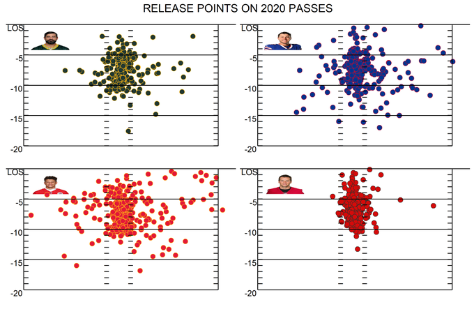 Ha Brady megkapja a kellő védelmet a faltól és olyan pontokról dolgozhat, mint a fenti ábrán, akkor pedig az ő rutinjával könnyen operálhat majd a Packers passzvédelme ellen, amely sebezhető. Természetesen az ő egységükben is vannak nagyon stabil pontok, de rendszer szinten sebezhető az egység, amit muszáj lesz kiaknázniuk Leftwichéknek. Járhat ez vezéráldozattal, miszerint Jaire Alexander felé kevés koncepciót hívnak és az egyik sztár a szélen, akár legyen az Evans, alacsony számú célbavételt kap, de Kevin King oldalára sok akció mehet majd.