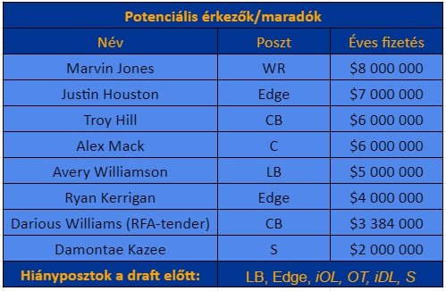 1-2 éves szerződésekkel operálva nagyon szépen meg lehet erősíteni a rostert, ráadásul maradna az újoncokra is pénz. A draft második körében érkezhet egy linebacker vagy egy ígéretes pass rusher, illetve BPA alapon lehet mélyíteni a rostert. A lehetőség tehát adott, hogy egy nagyon potens, minden téren Super Bowl esélyes csapat álljon össze Los Angelesben.