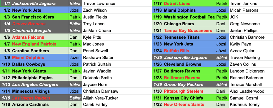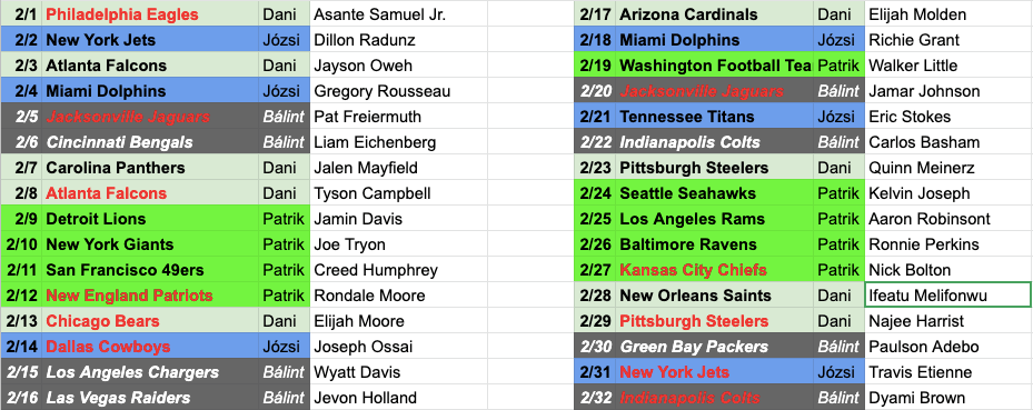 Egy fokozattal feljebb kapcsolunk és nem csak az első kört rakjuk össze, hanem a második körre is választunk játékosokat! Nem is beszéltük meg előre a dolgokat, hanem felvétel közben derült ki minden pick, így azonnal kellett reagálnunk és cseréket összehozni.