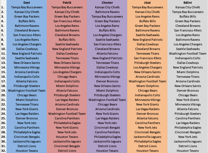 Végül pedig álljon itt mind az öt szerkesztő egyéni listája: