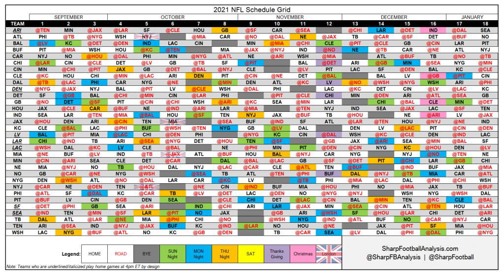 Heti bontásban pedig így néz ki a menetrend, via touchdownwire: