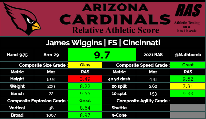 Újabb játékos, akit sleepernek tartottam, bár nem teljesen világos, miért pont a Cardinals húzta őt, amikor ott van náluk Budda Baker, Jalen Thompson, Shawn Williams, Chris Banjo, Deionte Thompson ezen a poszton, meglehetősen nehéz lesz Wigginsnek odaférnie a keretbe. Két évet volt kezdő az egyetemen, 2018-ban volt a legjobb szezonja. Utána elszakadt az ACL-je, majd kihagyta a 2019-es évet, tavaly pedig nem volt az a playmaker, mint két évvel korábban, amikor is 4 interceptiont szerzett és számos nagy ütéssel hívta fel magára a figyelmet.