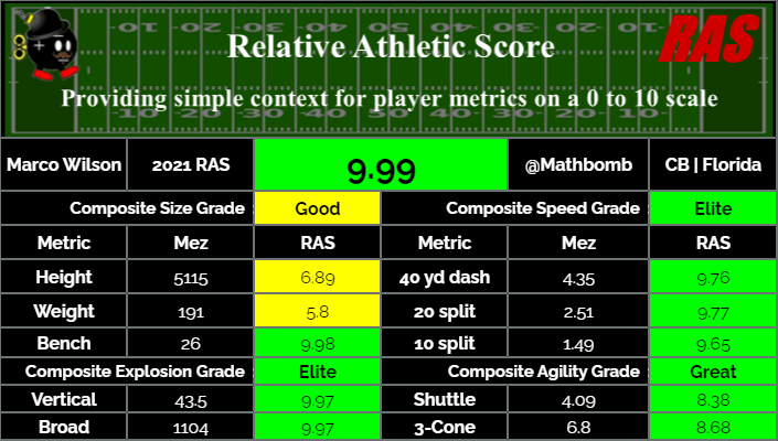 Marco Wilson testvéréhez, Quincy Wilsonhoz hasonlóan cornerback poszton játszott a Florida Gatorsben. Rögtön elsőévesként a szezonnyitótól fogva kezdő volt, ezt nem sokan mondhatják el magukról. A 2018-as szezont szinte teljesen kihagyta ACL-szakadás miatt, ami ráadásul neki a második volt, hiszen középiskolásként is hasonló sérülést szenvedett, csak akkor a jobb térdében. Összesen 35 meccsen volt kezdő a legerősebb egyetemi konferenciában, nem csak a szélen, a slotban is van tapasztalata. Nem volt jó szezonja tavaly, 117-es passer ratinget átlagoltak ellene az irányítók, konkrétan az utolsó éve volt a leggyengébb az egyetemen. A testvére ráadásul bust is lett a Coltsban. Miért draftolta akkor a Cardinals? Mert bár átlagos felépítésű a poszton, elit atléta, aki kiemelkedő számokat produkált a Pro Dayen.
