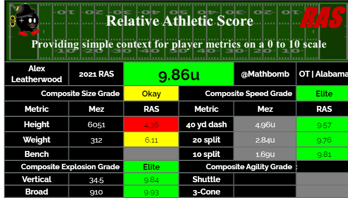 A bevezető után talán érthetőbb, hogy miért Leatherwoodot választotta a Raiders az első körben. Alabamában játszott, ahol csapatkapitány volt, nemzeti bajnok lett, diplomát is szerzett, az edzők kedvelték. Hiányposztra érkezett, hiszen Trent Brownt a renyhe hozzáállása miatt minimális ellenértékért visszaküldték New Englandbe, így nagy szükség volt egy jobboldali tackle-re, aki az első naptól kezdő lehet. A kérdés igazából az, hogy miért nem Christian Darrisaw vagy Teven Jenkins volt a választás 1/17-re, akik szintén elérhetőek voltak.