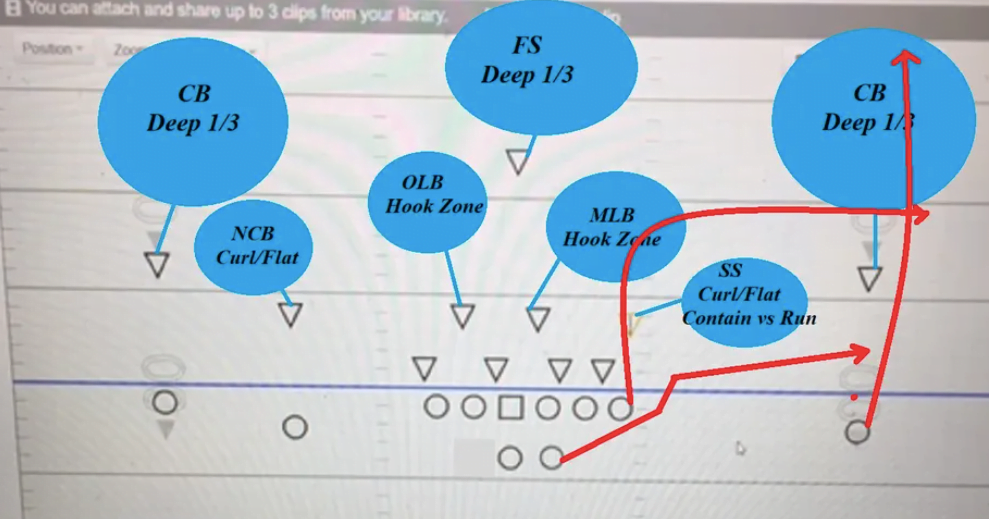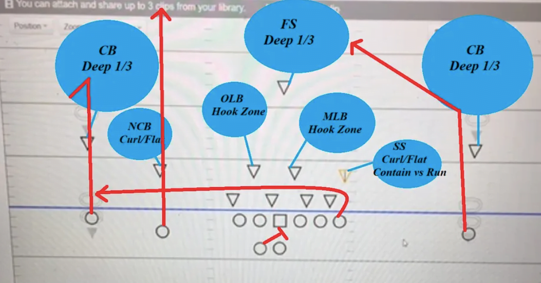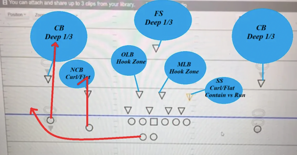 Ha hárman vannak hátul, akkor az viszont azt jelenti (alapesetben, 4 irányítót támadó védőfalemberrel számolva), hogy csak négyen maradtak az underneath zónák levédekezésére, akiknek az egész pályát széltében le kellene fedni, ami viszont nem egyszerű feladat. Nickel felállással számolva a slot cornernek és a strong safetynek a felelőssége a curl/flat zónák (előbb a curl, utána a flat), a linebackereké pedig a hook zónák.