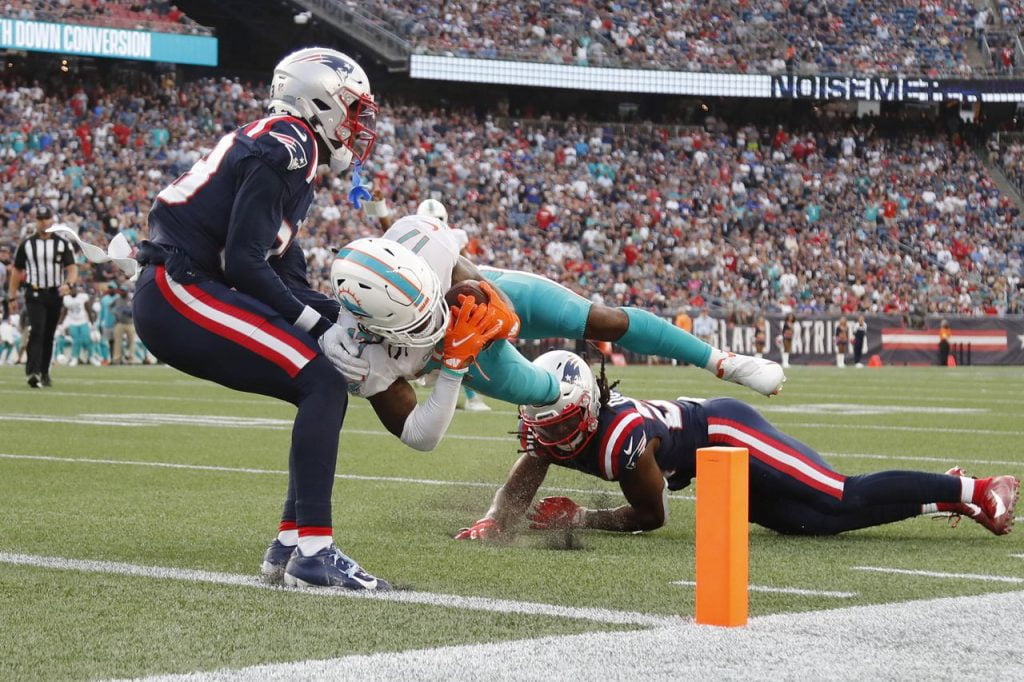 Damien Harris fumbles inside the red zone and Miami (+3.5) takes over with 3:18 to play pic.twitter.com/7mHBFPQTOb