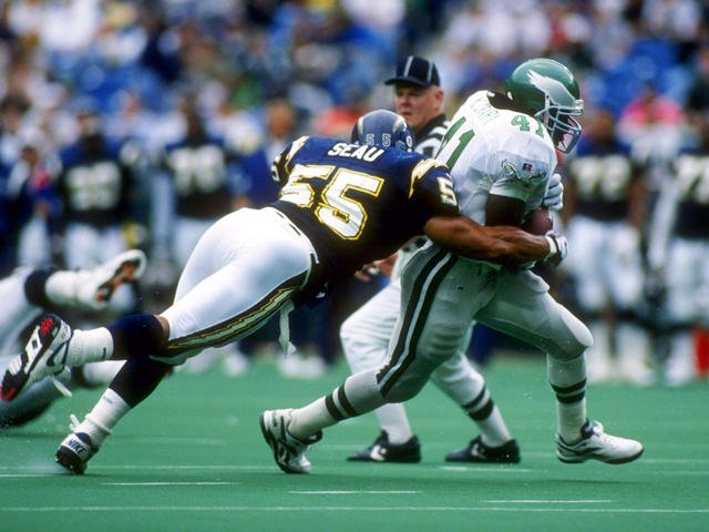 Junior Seau egy kis samoai szigetről származik, mégis hatalmasat robbantott az NFL világában. Mindössze egy egyetemi szezon után már vitték is a profik közé, megreformálta a posztját és egészen új utat mutatott a jövő linebackerei számára. Igazi példakép volt sokaknak és 20 lejátszott évéből 12-ben Pro Bowlra nevezték, kilencszer volt All-Pro. A sikeres karriernek ugyanakkor ára volt: eltitkolt agyrázkódásai és súlyos agykárosodása miatt maga vetett véget az életének.