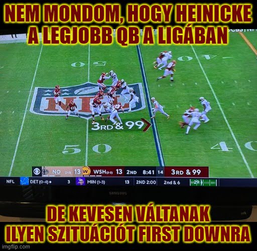 Inkább ne! Ezen a héten mindenki jobban jár, ha nem próbál meg rúgni. Kivéve ha a Lions az ellenfél. Akkor a saját end zone-ból is meg lehet próbálni a meccs végén, 100% hogy bemegy majd.
