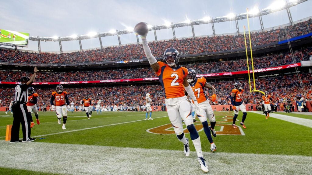 Pat Surtain II goes 70 yards for his first career pick-6! #BroncosCountry @PatSurtainll