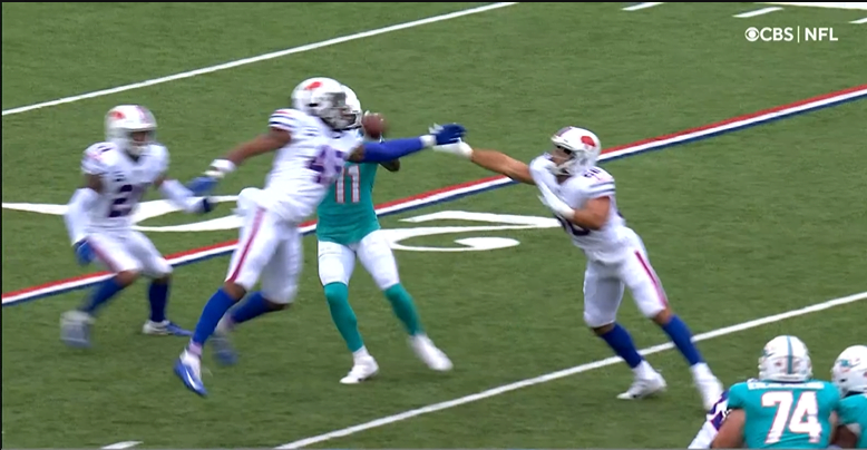 A meccs előtt a liga egyik leggyengébben teljesítő védelme fogadta az MVP-címre pályázó irányító vezette buffalói támadósort, ami nem sok jóval kecsegtetett a Dolphins fanok számára, de talán a szezon legjobb meccsét játszotta most a vendég védelem – egy darabig. Félideig mindössze a saját 39 yardosukig engedték csak a Billst, ami szemmel láthatóan nem ízlett Josh Allennek, borzasztó frusztrált volt a meccs elején, mert semmi nem jött össze az offense-nek. Volt is mit törlesztenie a Dolphinsnak az “odavágós” kiütés miatt, de a félidőt követően megfordult a laposztás.
