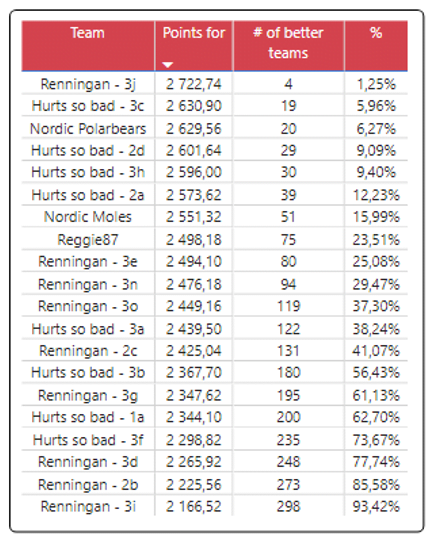 Legalább egy szerkesztőnél 298-an voltak jobbak, ha valaki részletesebben szeretné látni, hogy pontosan hány szerkesztőt is előzött volna meg az idei szezonban, akkor az alábbi táblázatot tudja böngészni.