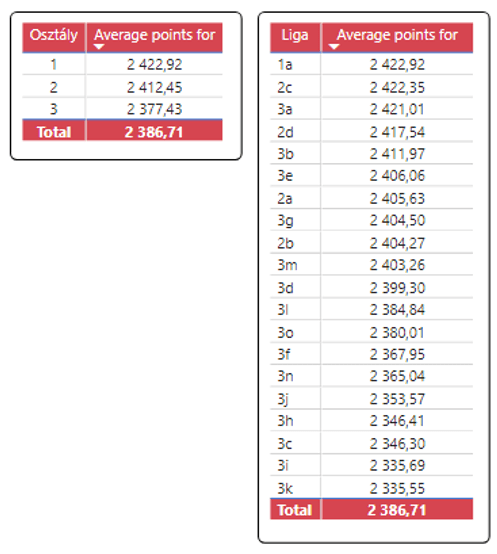 Ha a szerkesztők után ránézünk az egyes ligák eredményeire, akkor talán élhetünk azzal a közhellyel, hogy kijött az osztálykülönbség a csapatok között. Bár nagy különbség nem alakult ki, de az 1. osztály csapatai hozták a legtöbb pontot, míg a 3. osztály csapatai visszafogottabb teljesítményt nyújtottak. Következő szezonban lehet javítani.