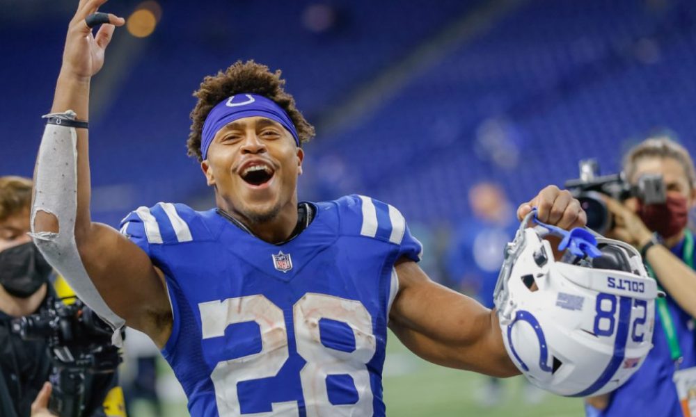 Jonathan Taylor köröket ver a többi futóra