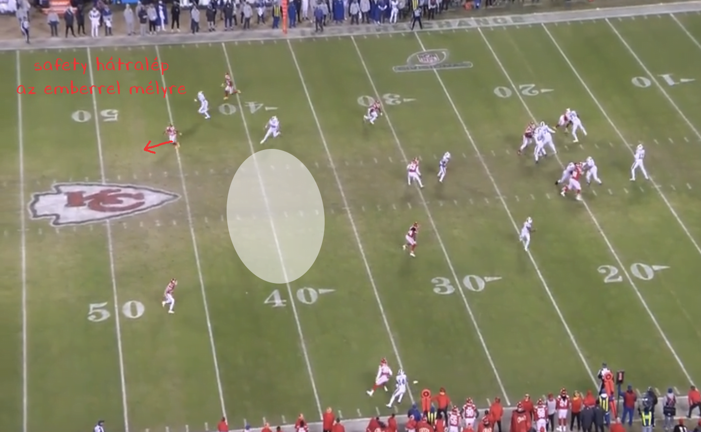 Persze tegyük hozzá, hogy egy LB nem a legjobb matchup egy mélyre érkező WR ellen, de a safetyknek akkor is legfeljebb fél szemmel kell befelé kacsintgatniuk, elsődleges feladatuk az, hogy olyan mélyen és olyan szélesen legyenek, amennyire kell, azaz amennyire a támadók megkövetelik (főleg egy ilyen karral rendelkező QB ellen).