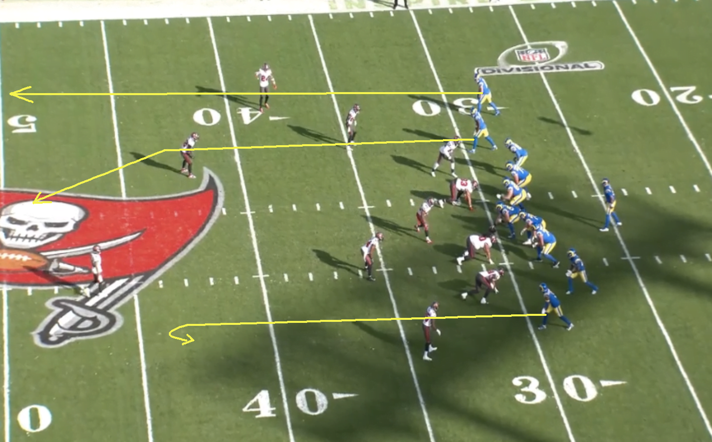 Épp ezért érthetetlen, hogy Mike Edwards mégis miért váltott be középre, szabadon hagyva a felelősségét, ahová Cooper Kupp egyenesen befutott. Semmi extrát nem csinált itt a Rams, ebben a támadóhívásban nem volt semmi különös, ami hibázásra kellett volna késztesse Edwardsot, ő mégis beváltott középre és üresen hagyta Kuppot.