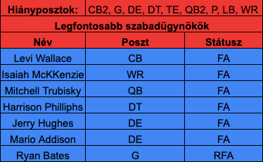 A Bills abban a kényelmes helyzetben találta magát, hogy a liga egyik legjobb irányítójával rendelkezik, aki ad egy elég magas padlót a csapat számára, és aki ráadásul idén megmutatta, hogy nem csak az alapszakaszban képes extra szintet hozni, hanem a PO-ban is. A cél adott, Josh Allen köré egy olyan csapatot kell építeni, amely képes elhódítani a hőn áhított Lombardi trófeát, ehhez viszont ki kell lépni a komfort zónából, mert nem lesz elég a szimplán szinten tartás.