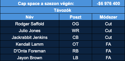 Mindezek mellett ahogy az várható volt a csapat hagyott elmenni egy rakat játékost (vagy nem hosszabbított egy részükkel), mint például Jayon Brown, Kendall Lamm vagy D’Onta Foreman. Annyira egyikükért sem fájna a szívem. Foreman elengedése lehet talán kisebb meglepetés, mert Henry sérülése után egészen jól szállt be, de ez inkább a támadófalnak és a rendszernek volt köszönhető, mert valljuk be, elég kevesen hiszünk igazán Foremanben. Mellette egyébként Darrynton Evans is távozott a futó posztról (ellenben Jordan Wilkins és Dontrell Hilliard meg maradt).