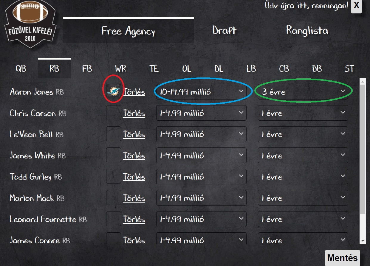 Itt találjátok az idei piac legjobb szabadügynökeit (Fontos: néhány posztnál olyan sok van, hogy görgetni kell). Nektek azt kell eltalálni, hogy melyik csapathoz fog szerződni (pirossal jelölve), hány évre (zölddel jelölve) és mekkora lesz az átlagos fizetése (kékkel jelölve):