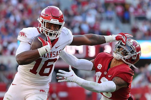 See it here. Off coverage. Throw the quick smoke route. @NFLMatchup #Arkansas pic.twitter.com/Dj77H7hHap