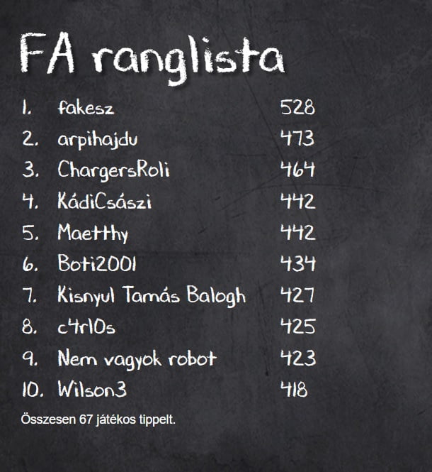 Előzetes eredményhirdetés – FA-Tippjáték