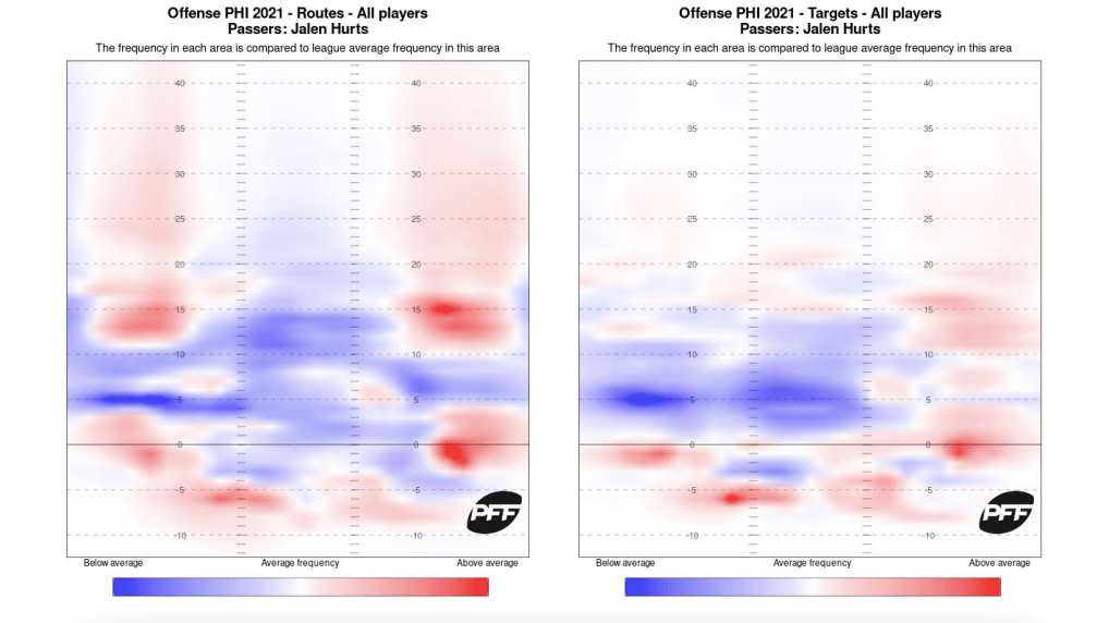 A legjobb példa erre az Eagles. AJ Brown már most egy bizonyított top10-es elkapó, ellenben mindössze 24 éves, tehát hosszú távon is lehet rá számítani ilyen magas minőségben. Már az nagyon sokat segít, hogy egy top elkapó érkezett a csapatba, azonban Brown a stílusával is hozzátesz ahhoz, hogy segítse Hurts fejlődését. A QB talán legnagyobb problémája, hogy a pálya közepére nem igazán volt hajlandó dobni NFL-karrierje során. Nos, AJ Brown pedig épp ott igazán elit, szóval ha vele sem fog ez menni Hurtsnek, akkor senkivel. Ha Hurtsben van egy jó irányító potenciál, akkor kell egy AJ Brown ennek feloldásához. Ha menni fog a dolog, akkor Hurts előrelép és akár a playoffban is lehet meccset nyerni. Ha nem fog menni, akkor Hurts távozik, jön helyette egy következő újonc irányító, akinek ismét csak lesz egy 25 éves AJ Brownja.