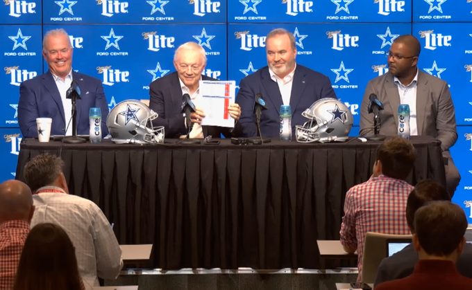 A draft első köre után a Cowboys tulajdonosa, Jerry Jones igyekezett bizonygatni, hogy milyen magasan volt a boardjukon a kiválasztott Tyler Smith, magasabban mint Zion Johnson és Kenyon Green. A sajtószobában elég szkeptikusak voltak ezzel kapcsolatban, szóval Jones felkapott egy papírt és megmutatta a Cowboys boardját, hogy bizonyítsa igazát – fia, Stephen gyorsan rá is szólt, hogy ne mutogassa mindenkinek.