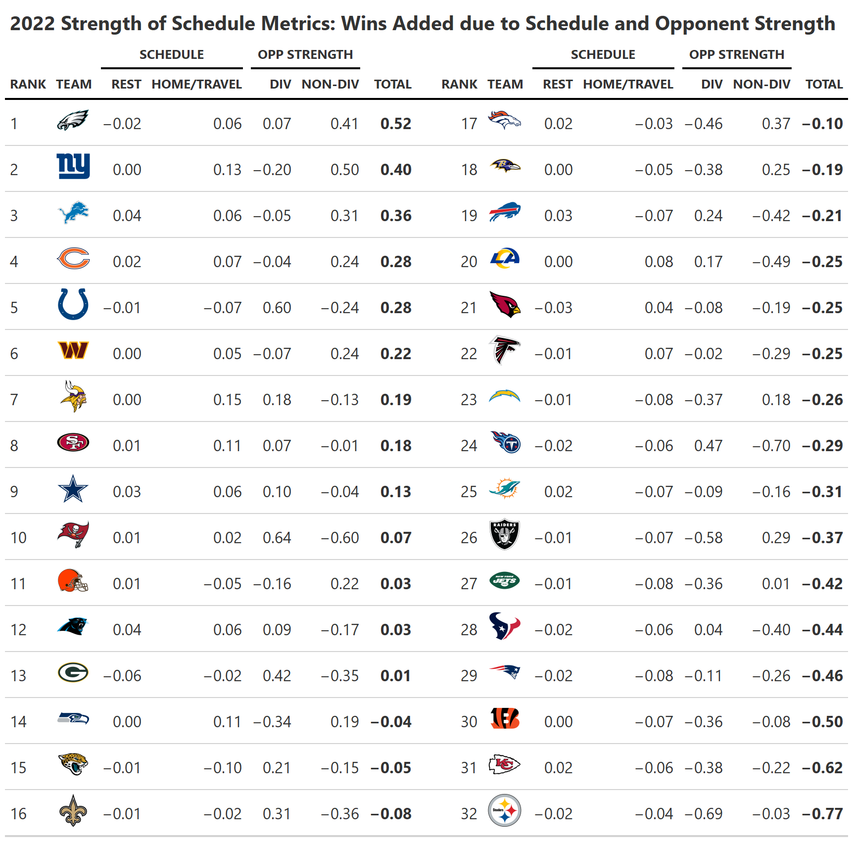 Most, hogy a teljes NFL menetrend ismert, mindenféle elemzést lehet készíteni arra vonatkozólag, hogy ki járt jobban és ki járt rosszabbul ennek összeállításával. Tom Bliss ezt meg is tette, és megnézte, hogy hány győzelmet ad hozzá vagy épp vesz el az, hogy mennyit pihenhetnek a csapatok, mennyit kell utazniuk és hogy milyen ellenfelekkel játszanak.