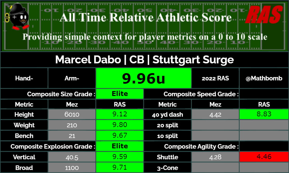 Marcel Dabo atletikussági mutatói, Arizona State Pro Day