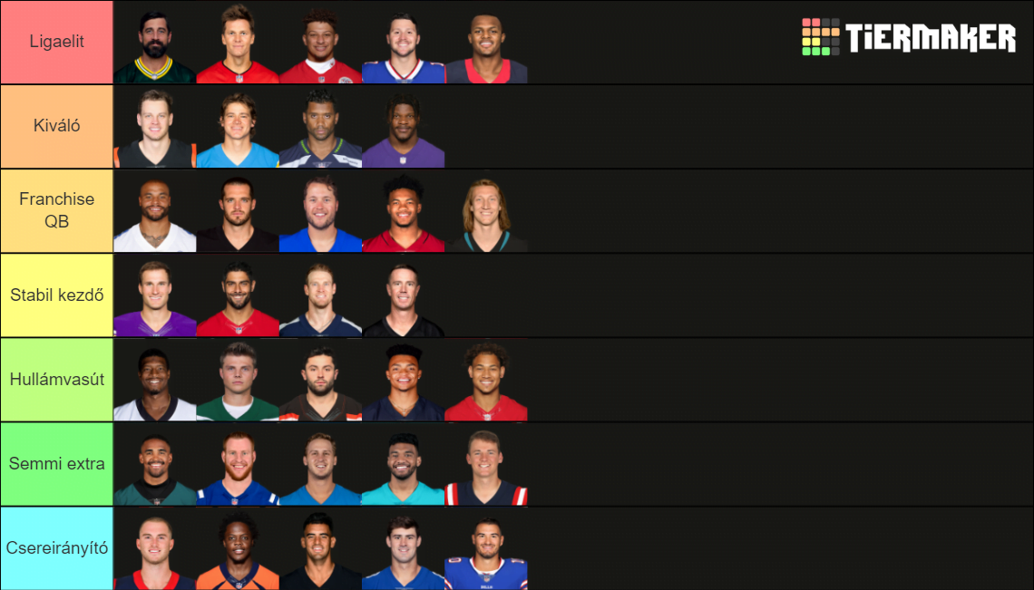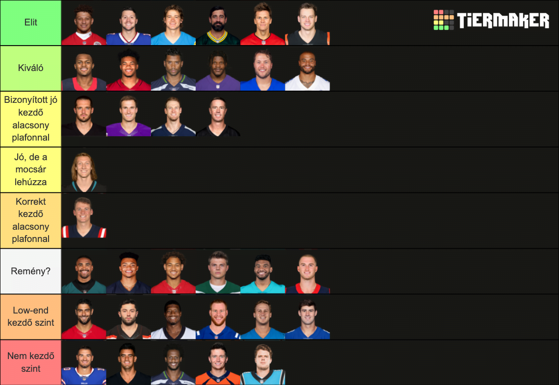 Azt gondolom, hogy az alsó két polcot sem kell különösebben indokolni. Vagy hát az utolsót fixen nem, a low-end kezdők közül biztosan van, akiket egyesek átpakolnának a legalsóba, de mindegyikükről úgy gondolom, hogy egy NFL-kezdő szintet megütnek, csak hát annak az alsó végét, és ezért nem is lehet rájuk építeni, csak köztes megoldásnak jók, hogy ne legyél totális katasztrófa az adott szezonban.