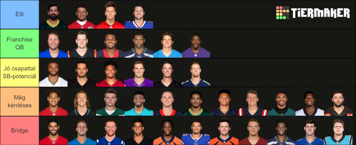 A még kérdéses kategóriába azok a többségében fiatal QB-k kerültek, akikről nem tudtam az eddigiek alapján eldönteni, hogy bustok vagy képesek-e egy, akár két szintet is feljebb lépni. Tippre jövő ilyenkor Lawrence, Jones és Lance vagy Winston feljebb kerülhet, Tua, Mills és Hurts lejjebb, a többiekről meg továbbra sem fog kiderülni, hogy merre is az arra. Az utolsó csoportba pedig azok a játékosok kerültek, akik csak bridge QB-nak jók, vagyis van bennük kezdő potenciál, de csak annyi időre, míg nem sikerül draftolni és kinevelni egy fiatal tehetséget.