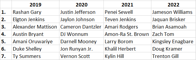 - kötelező az elmúlt négy draft (2019-2022) minden köréből egy játékost választani, aki még jelenleg is az NFC Northban játszik (amennyiben van ilyen az adott körben)