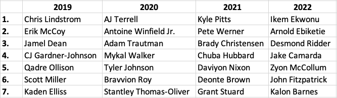 A falembereknél egyébként érdekes puzzle alakult ki a keret összerakásakor, hiszen a draftról több helyen is úgy alakult, hogy két opcióm volt, és az egyik egy iOL. A 2019-es első körben Lindstrom mellett Devin White és Brian Burns, a 2019-es második körben McCoy és Sean Murphy-Bunting, a 2020-as harmadik körben Matt Hennessy és Adam Trautman voltak versenyben és csak a végén tudtam összerakni, melyik posztra kellenek még emberek és melyikre nem, így került be végül Hennessy helyett a gyengébb McCoy, és így lett Lindstrom a keret tagja, noha bőven lehetne érvelni Burns és White mellett is, ha csak ezt a három játékost nézzük.