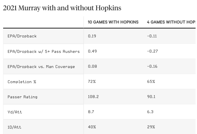 Nos, Hopkins tavaly megsérült, Kyler Murray számai pedig bezuhantak:
