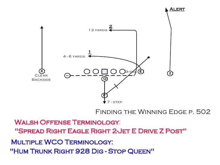 A támadóguru úgy okoskodott, hogy ha az irányítója 10 yardnál messzebb nem tudja dobni a labdát, akkor az elkapóknak kell termelniük a yardokat. Ezt viszont a szélen nem igazán lehet kivitelezni, tehát valahogy üressé kellene tenni a pálya közepét. Így született meg a West Coast offense.