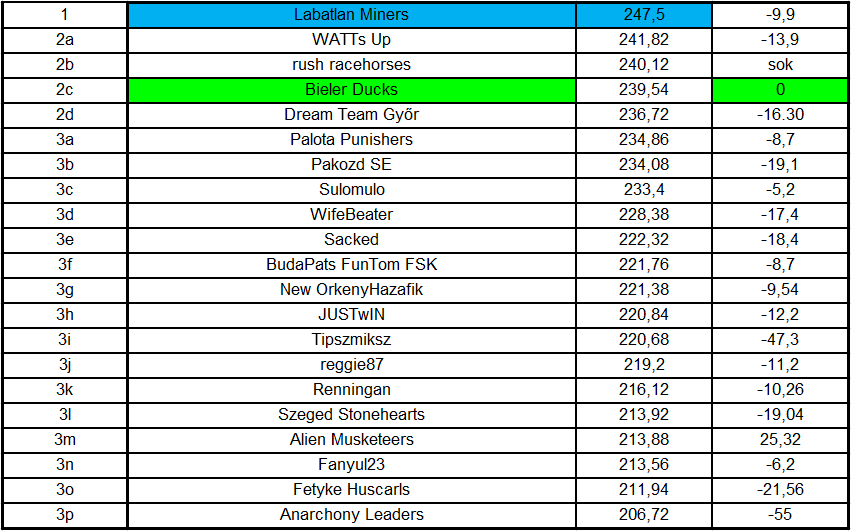 Ismét erőre kapott a liga, rengeteg volt a 200+ pontos csapat és minden csoportot sikerült az álomhatár átlépésével behúzni. Ezúttal az eleje is szoros volt, Labatlan Miners és a top 5 többi tagja között alig volt 10 pontnyi különbség. A legjobb kezdőt ezúttal Bieler Ducks rakta össze, a legnagyobb arányú győzelmet pedig yszak (3D) aratta.