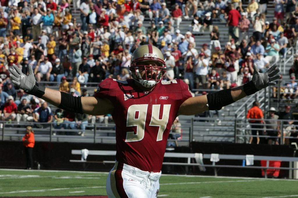 Linebackerként játszott a középiskolában és hamar felkeltette több egyetem figyelmét. A Duke, a North Carolina, a Vanderbilt, a Virginia és a Boston is versengett a fiatal védőért, ő pedig végül utóbbit választotta. A döntés bevált, csak úgy lubickolt az egyetemen: szinte minden rangsorban a legjobbak között szerepelt, az egyetemi futball egyik legjobb védőtehetségének tartották. Juniorként 110 tackle, hat interception, nyolc leütött passz, két összeszedett és visszahordott fumble, illetve 13 negatív yardos szerelés került a neve mellé, a legtöbb szakértő egyértelműen a top 15-be várta a 2009-es drafton. Csakhogy a sors közbeszólt.