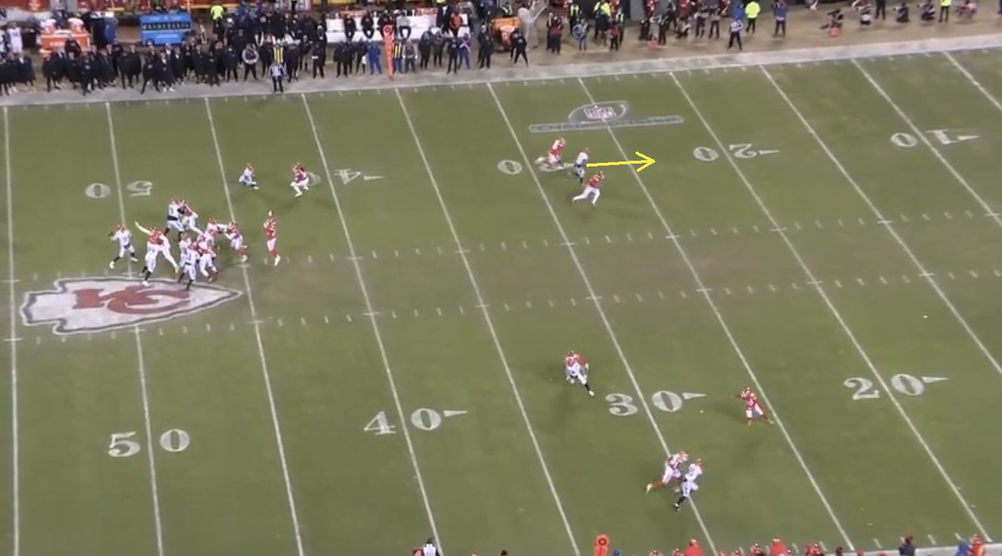Ezzel tehát megvolt a Chiefs első nagy válasza itt a meccs végén, majd nem sokkal később jött a következő. Ez a Bengals utolsó támadása, döntetlennél, harmadik kísérlet.