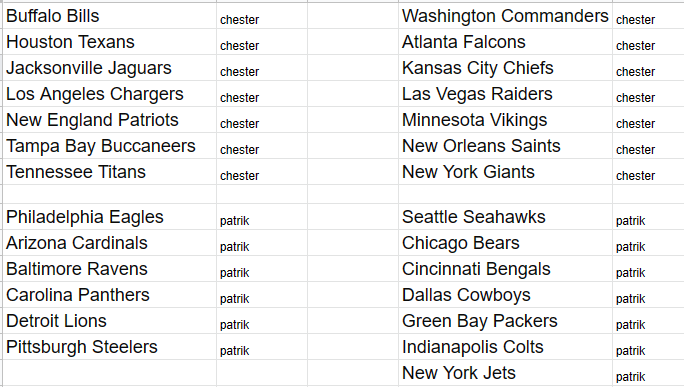Nem vagyok túl lelkes az idei QB-kért, Stroud tetszene a legjobban, ezért meghirdettem az 1/2-t, és kaptam egy jó ajánlatot, kockáztatva hogy bukom az irányítómat. Azonban mi a jobb annál, hogy kihúzod CJ Stroudot a Texanshoz? Ha kihúzod CJ Stroudot a Texanshoz, és mellé kapsz egy jövő évi első kört is. A Brownsnak hála így is marad pick a harmadik körre, így ez számomra abszolút győzelem volt.