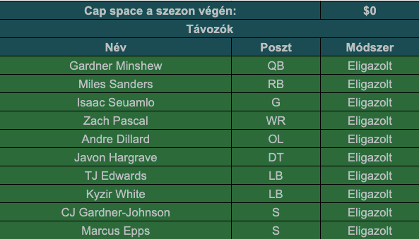 Na és akkor nézzük, kiket tartott meg az Eagles, illetve kiket igazolt a maradék pénzéből.