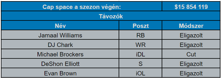 Pénz tehát lett volna arra, hogy akár az összes fontosabb lejáró szabadügynökét visszaigazolja a Lions, de végül több relatíve értékes játékos is távozott. A legnagyobb nevű távozó talán a tavaly 1066 yardot és 17 TD-t futó Jamaal Williams, aki mindössze évi 4 millió dolláros fizetésért költözött New Orleansba. Állítólag a Detroit tett neki ajánlatot, de az a futó szerint “tiszteletlen volt” – látva, mit kapott a Saintstől, a Lions tényleg nagyon keveset ajánlhatott. Ezzel együtt nem olyan nagy érvágás a távozása, sokkal inkább a rendszer tette naggyá, mint a saját kvalitásai.